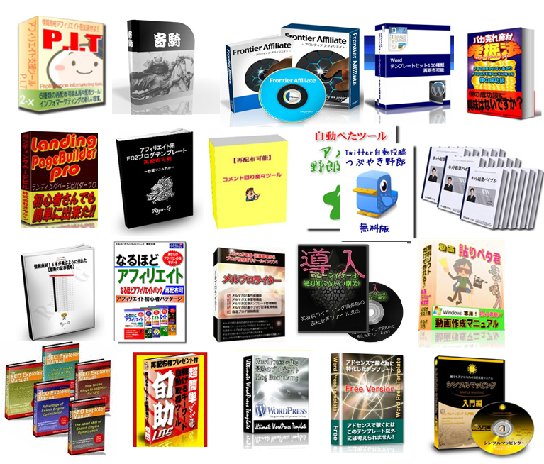ほとんどの商材に再配布権が付いていますので、ご自身で利用の他にもアフィリエイトの特典などにご利用いただけます。